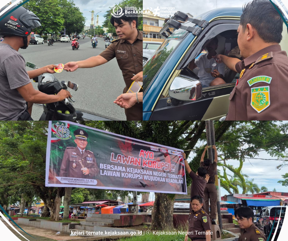 Bahwa kegiatan Kampanye Anti Korupsi bertujuan untuk meningkatkan kesadaran masyarakat mengenai bahaya korupsi dan pentingnya budaya integritas. Melalui pembagian merchandise dan interaksi langsung, ASN Kejaksaan Negeri Ternate menyampaikan pesan bahwa korupsi sangat merugikan negara dan masyarakat, serta mengajak semua pihak untuk berperan aktif dalam pemberantasan korupsi;