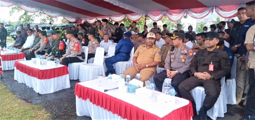Kejari Ternate – (09/05/2023) Selasa, sekitar pukul 10.00 WIT, bertempat di Lapangan Perikanan Bastiong, Kel. Bastiong, Kec. Ternate Selatan, Kota Ternate, telah dilaksanakan Apel Gelar Pasukan dalam rangka Kunjungan Kerja Wakil Presiden Republik Indonesia di Wilayah Maluku Utara. Adapun mewakili Kejaksaan Negeri Ternate, Bapak Muhammad Adung, S.H., M.H. (Kasi PB3R) selaku Plh. Kepala Kejaksaan Negeri Ternate yang menghadiri Apel pagi tersebut. Turut hadir dalam dalam kegiatan tersebut, adalah Forkopimda Kota Ternate, Kodam XVI/Pattimura, Korem 152/Baabullah, Lanal Ternate, Lanud Ternate, Lanud Leo Wattimena Morotai dan Polda Malut. Tujuan dari Apel Gelar Pasukan dalam rangka Kunjungan Kerja Wakil Presiden Republik Indonesia di Wilayah Maluku Utara untuk memastikan kesiapan pengamanan dalam kunjungan nanti. Jalannya apel pagi dari awal hingga akhir berjalan dengan tertib, aman, dan ditutup pada pukul 11:00 WIT.