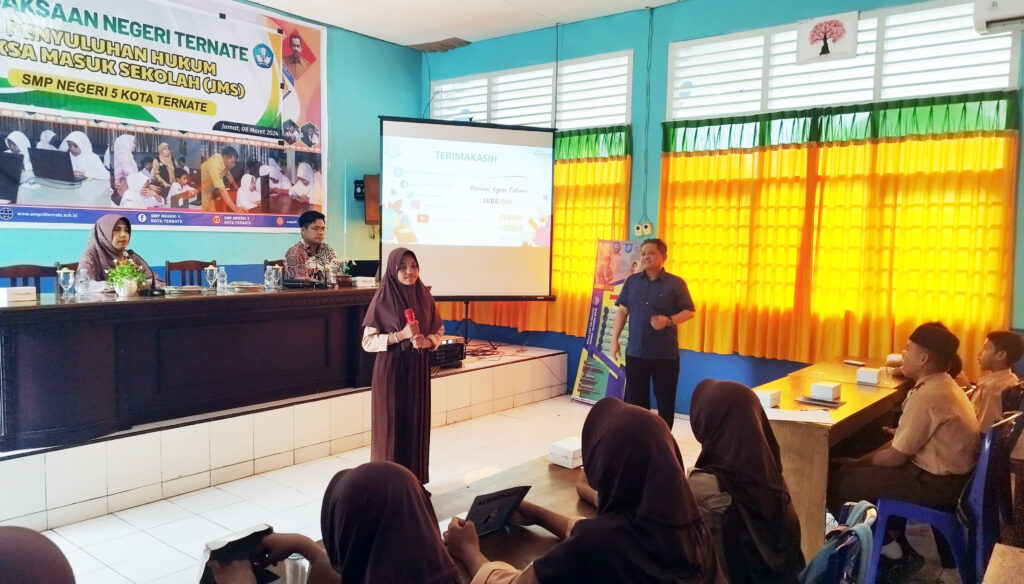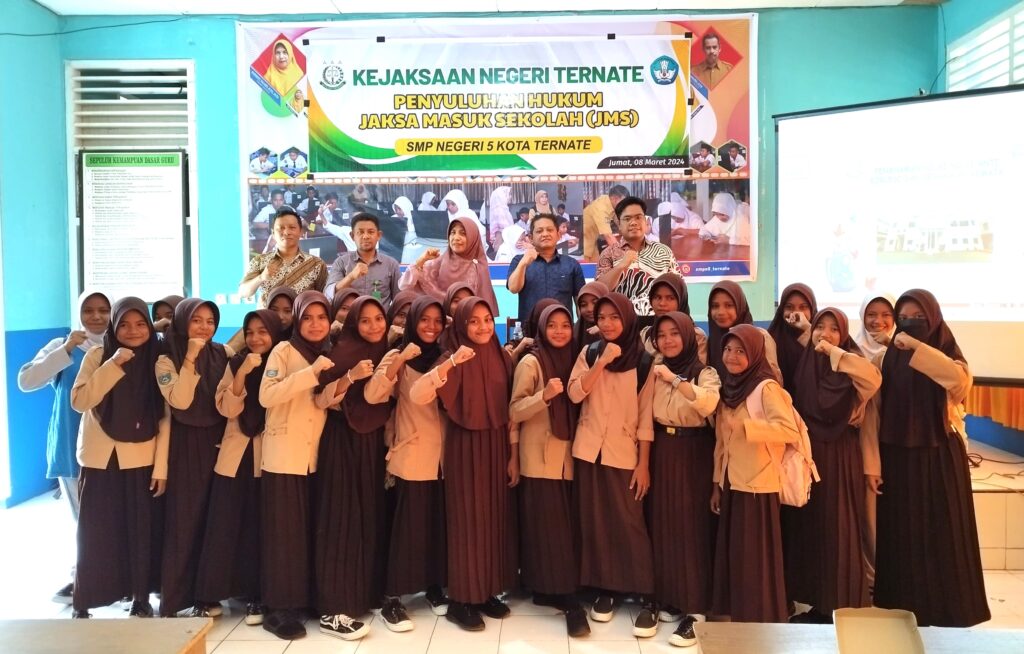 Kejari_Ternate (08/03/2024) Jumat, sekitar Pukul 09.00 WIT bertempat di SMP Negeri 5 Kota Ternate, Jl. Batu Angus, Tabam, Kec. Ternate Utara, Kota Ternate, telah dilaksanakan kegiatan Penyuluhan Hukum melalui program Jaksa Masuk Sekolah, yang dipimpin oleh Kepala Seksi Intelijen, Aan Syaeful Anwar S.H., M.H., bersama dengan jajarannya. Adapun Tema yang diangkat “Pengenalan Tugas dan Fungsi Kejaksaan” serta “Penanaman Nilai-Nilai Anti Korupsi Dan Kenakalan Remaja“.