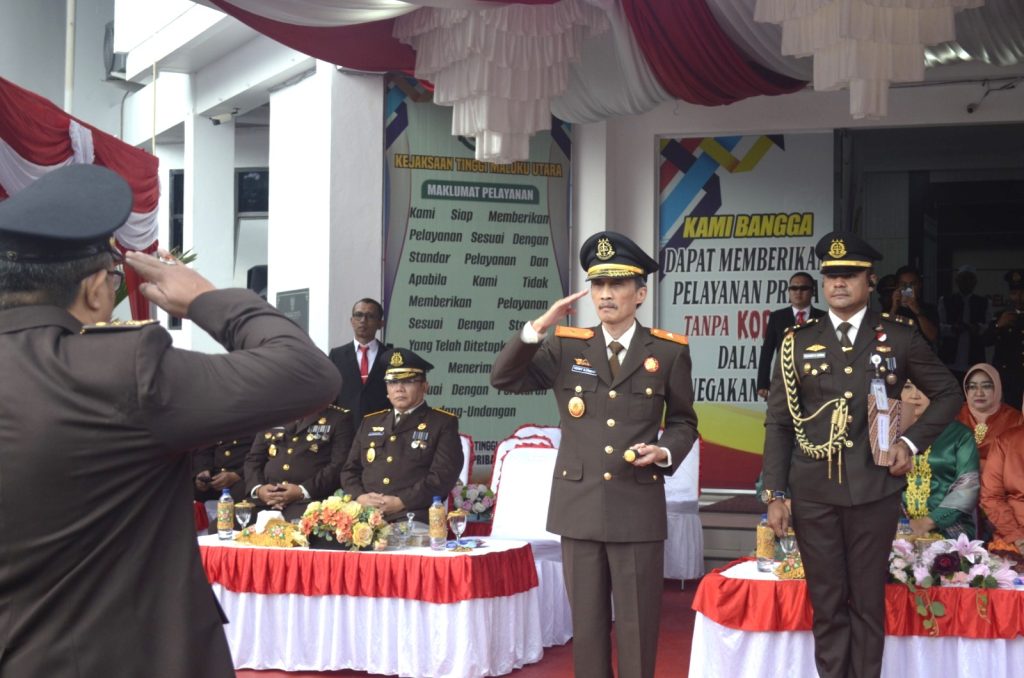Kejari_Ternate (22/07/2023) Senin, 22 Juli 2024, sekitar pukul 07.00 WIT. Bapak Abdullah, S.H., M.Hum selaku Kepala Kejaksaan Negeri Ternate dan jajarannya melaksanakan rangkaian Upacara Hari Bhakti Adhyaksa (HBA) Ke-64 yang dipusatkan di halaman Kantor Kejaksaan Tinggi Maluku Utara. Upacara tersebut diikuti oleh seluruh pegawai Kejaksaan Negeri Ternate beserta Ikatan Adhyaksa Dharmakarini Daerah Ternate dan seluruh pegawai Kejaksaan Tinggi Maluku Utara beserta Ikatan Adhyaksa Dharmakarini Daerah Maluku Utara yang titik kumpul berpusat di halaman Kantor Kejaksaan Tinggi Maluku Utara. Adapun tema Hari Bhakti Adhyaksa 2024 atau HBA ke-64 adalah “Akselerasi Kejaksaan Untuk Mewujudkan Penegakan Hukum Modern Menuju Indonesia Emas”.