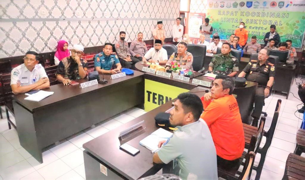 Rapat tersebut diadakan untuk mengatasi berbagai pemasalahan menjelang idul fitri dan pasca idul fitri yang harus di antisipasi, dan harus bergandengan tangan bersinergi dengan seluruh stakeholder terkait agar masyarakat Kota Ternate dapat menjalani ibadah puasa dan puncaknya pada perayaan idul fitri berjalan aman dan lancar serta jika ada masalah secepatnya ditindak lanjuti. Kemudian hasil rapat nantinya akan ditindaklanjuti kedepannya. Kegiatan berjalan dengan tertib, aman dan selesai pada Pukul 11.00 WIT