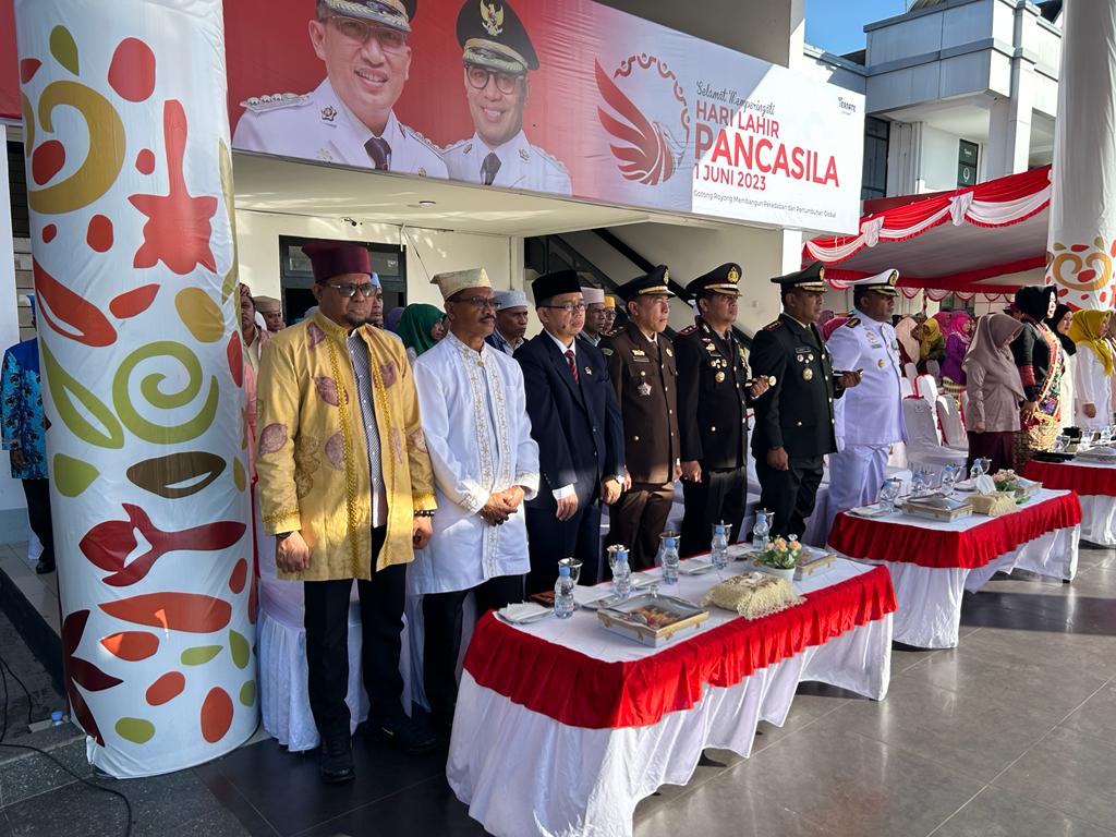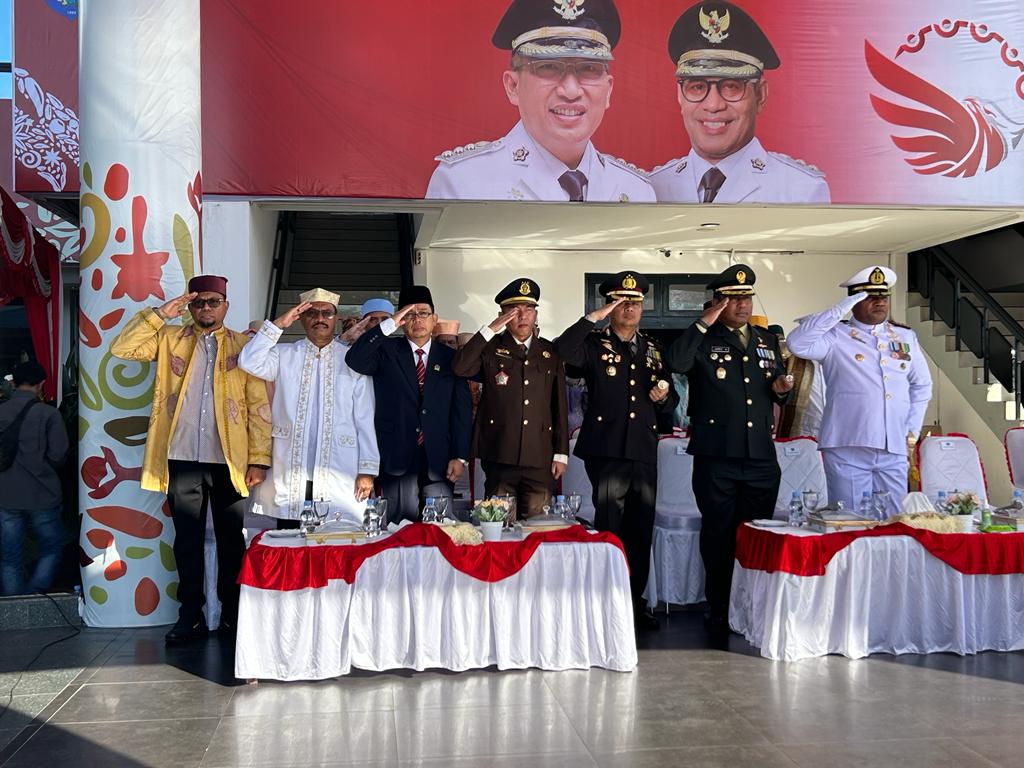 Kejari Ternate – (01/06/2023) Kamis Pukul 08.30 WIT bertempat di Halaman Kantor Walikota Ternate, Kel. Muhajirin, Kec. Ternate Tengah, Kota Ternate, telah dilaksanakan Upacara Bendera Peringatan Hari Lahir Pancasila yang digelar oleh Pemerintah Kota Ternate. Mewakili Kajari Ternate, Kepala Seksi Tindak Pidana Khusus Kejaksaan Negeri Ternate, Bapak Indra Gunawan Kesuma, S.H., M.H. turut hadir dalam upacara tersebut. Bertindak sebagai inspektur upacara sekaligus pemimpin upacara tersebut adalah Walikota Ternate, M. Tauhid Soleman. Di lokasi upacara, seluruh tamu undangan yang menghadiri upacara mengenakan pakaian adat Ternate, sementara peserta upacara mengenakan seragam Korpri. Walikota Ternate , M Tauhid Soleman dalam sambutan tertulisnya menyampaikan yang pada intinya “Peringatan Hari Lahir Pancasila adalah momentum untuk mengokohkan nilai-nilai Pancasila dalam bermasyarakat, berbangsa dan bernegara. Pancasila hadir dan menyatu dalam setiap sendi kehidupan kita sepanjang sejarah Republik ini”. Upacara Bendera Peringatan Hari Lahir Pancasila di Halaman Kantor Walikota berlangsung aman, tertib, dan selesai pada pukul 09:05 WIT.