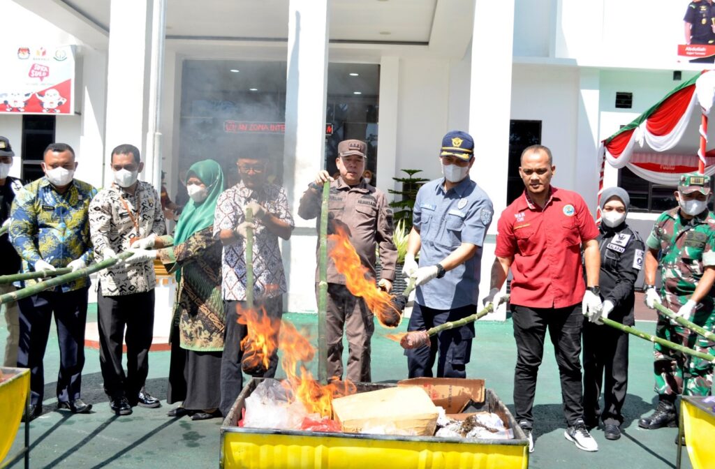 Kejari_Ternate (07/12/2023) Kamis, sekitar pukul 10.00 WIT, bertempat di halaman depan Kantor Kejaksaan Negeri Ternate, dilaksanakan Pemusnahan Barang Bukti Perkara Tindak Pidana Umum Periode September 2023 hingga Desember 2023 yang telah mempunyai Kekuatan Hukum tetap (inkracht). Adapun Barang Bukti yang dimusnahkan tersebut diantaranya adalah, Senjata Api (Senpi) ilegal, ganja, sabu dan minyak tawon palsu hingga Handphone. Pemusnahan barang bukti tersebut terdapat 28 perkara diantaranya, 25 perkara kasus penyalahgunaan narkoba dengan rincian 7 perkara sabu dengan berat 67,76 gram dan 18 perkara ganja dengan berat 3.380,2 gram sementara sisanya adalah adalah perkara kesehatan yakni minyak tawon palsu sebanyak 1.567 botol dan penyelundupan senjata api berbagai jenis beserta megazen maupun puluhan butir peluru Ss1 kaliber 5,565 tindak pidana umum lain-nya.