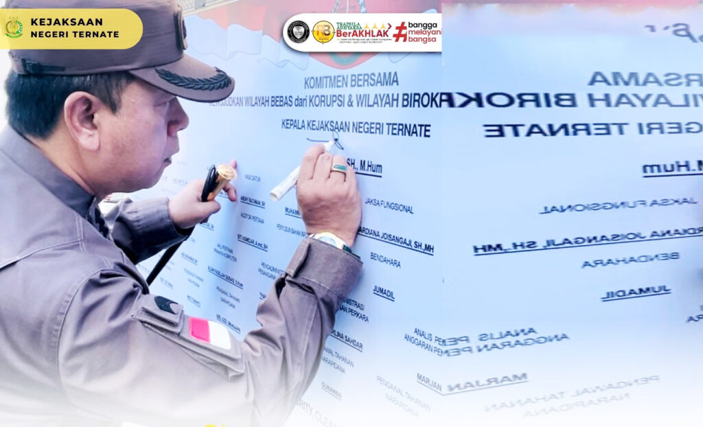 Serta dilaksanakan juga Penandatanganan Komitmen Bersama dalam mewujudkan Wilayah Bebas Korupsi (WBK) & Wilayah Birokrasi Bersih Melayani (WBBM) yang ditanda tangani oleh Kepala Kejaksaan Negeri Ternate beserta seluruh Jajarannya.