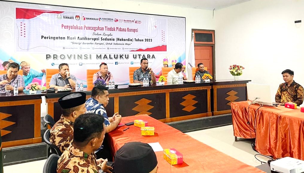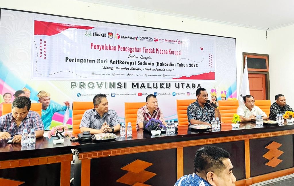 Kejari_Ternate (08/12/2023) Jumat, sekitar Pukul 10.00 WIT, bertempat di Kantor KPU Kota Ternate, telah dilaksanakan Penyuluhan Hukum dalam rangka peringatan Hari Anti Korupsi Sedunia (Hakordia) Tahun 2023 dengan tema yang diangkat “Sinergi Berantas Korupsi, Untuk Indonesia Maju”. Bahwa Kepala Seksi Tindak Pidana Khusus Kejari Ternate bertindak selaku Pemateri, kemudian Kepala Seksi Perdata dan Tata Usaha Negara serta Kepala Seksi Intelijen bertindak selaku penanggap.